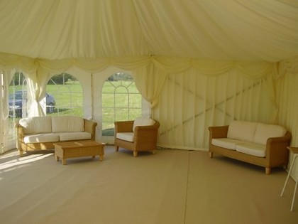 Marquee Reception Areas can be built in any size to accommodate your requirements and can incorporate settees, armchairs, tables, in fact any furniture you desire to enhance your marquee event whatever the theme or occasion.